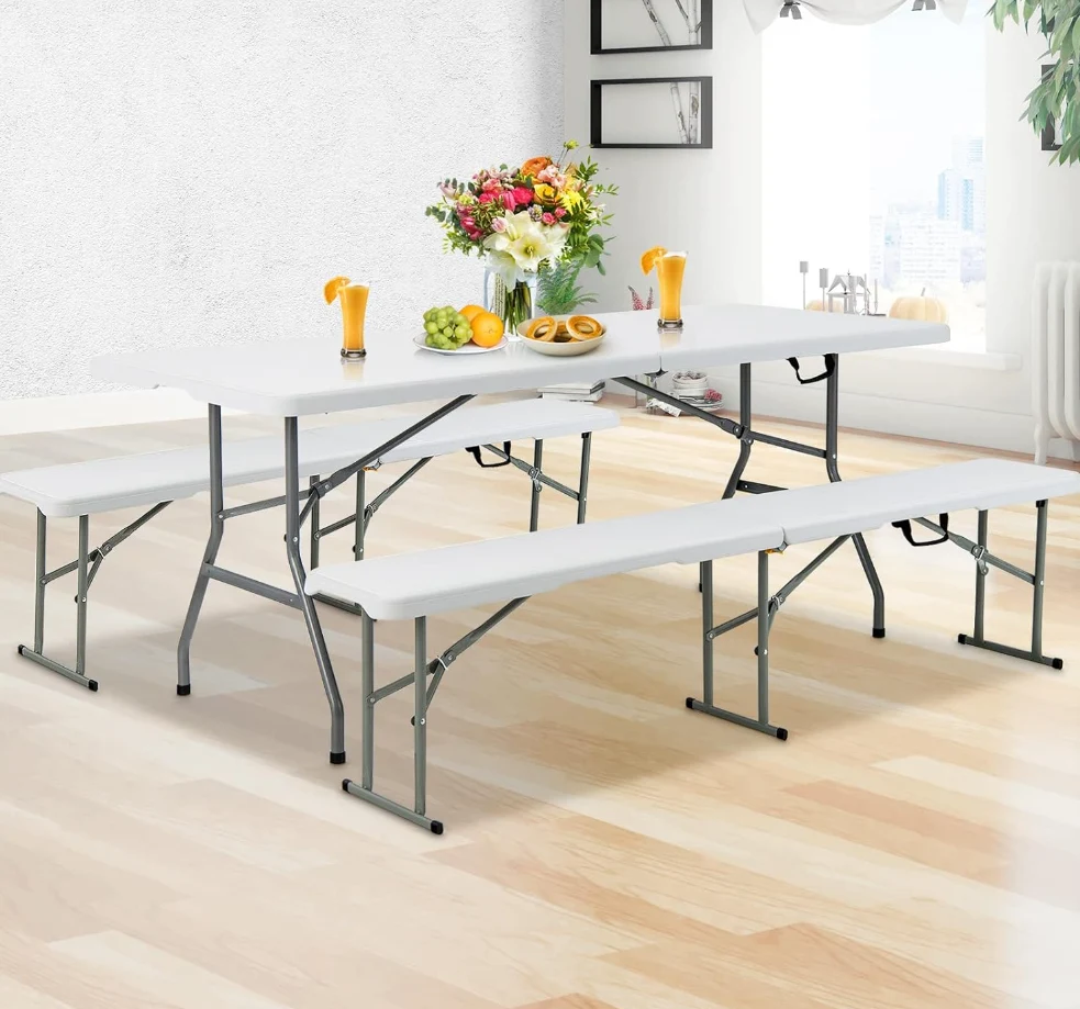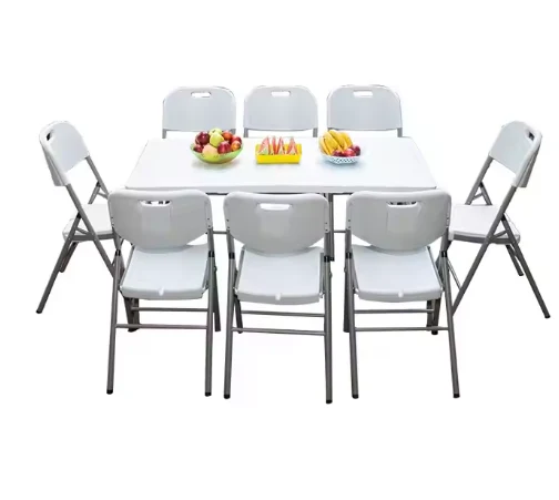 ઉચ્ચ-ગુણવત્તાવાળા આઉટડોર કેમ્પિંગ ટેબલ, વ્હાઇટ એચડીપીઇ વ્હાઇટ લંબચોરસ પિકનિક ટેબલ પ્લાસ્ટિક ફોલ્ડિંગ આઉટડોર કેમ્પિંગ ટેબલ, ખોરાક, મીઠાઈઓ, પીણાં અથવા નાસ્તાને પકડવા માટે જગ્યાની જગ્યા પૂરી પાડે છે. આ ફોલ્ડિંગ ટેબલ કુટુંબના ભોજન અથવા પાર્ટી ડિનર માટે આસપાસ એકઠા થવા માટે લગભગ 8 લોકોને સમાવી શકે છે. અને કોષ્ટક ટોચનાં બધા ખૂણા આકસ્મિક ઇજાને રોકવા માટે ગોળાકાર છે.