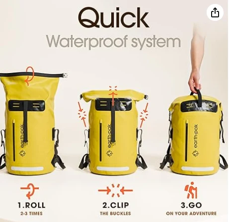 મુસાફરી, કાયકિંગ, બાઇકિંગ, મુસાફરી, કેમ્પિંગ અને માછીમારી દરમિયાન તમારા ગિયર સંપૂર્ણપણે સૂકા રહે છે તેની ખાતરી કરવા માટે વોટરપ્રૂફ ડ્રાય બેકપેક ડફેલ બેગ, 100% વોટરપ્રૂફ